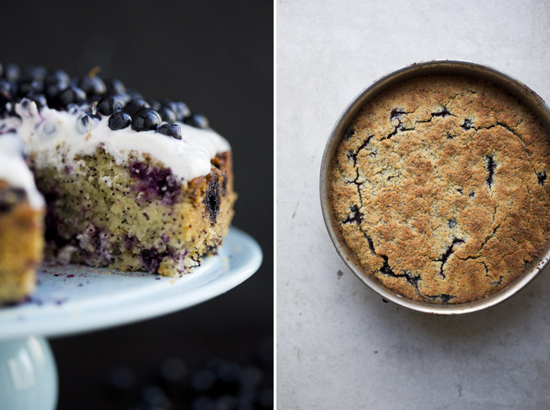 We mentioned earlier that we have been baking and eating bueblerries, ehm, blueberries in lots of different ways these last weeks. They have of course been thrown into smoothies, used in tarts, gobbled down by the handfull and sprinkled over our breakfast yogurt. But one of the most fun thing we did was Mini Calzones with ricotta, maple syrup, lime & blueberries. We made this dough, divided it in small cirkles that we filled it with blueberries, lime juice, maple syrup and ricotta cheese, and wrapped them up like calzones. Super cute and delicious. We did half the batch with normal savory filling and half with the sweet blueberry filling. That way, our dinner seamlessly turned into dessert. But now we’re loosing ourselves in the calzones when we should really talk about this cake.