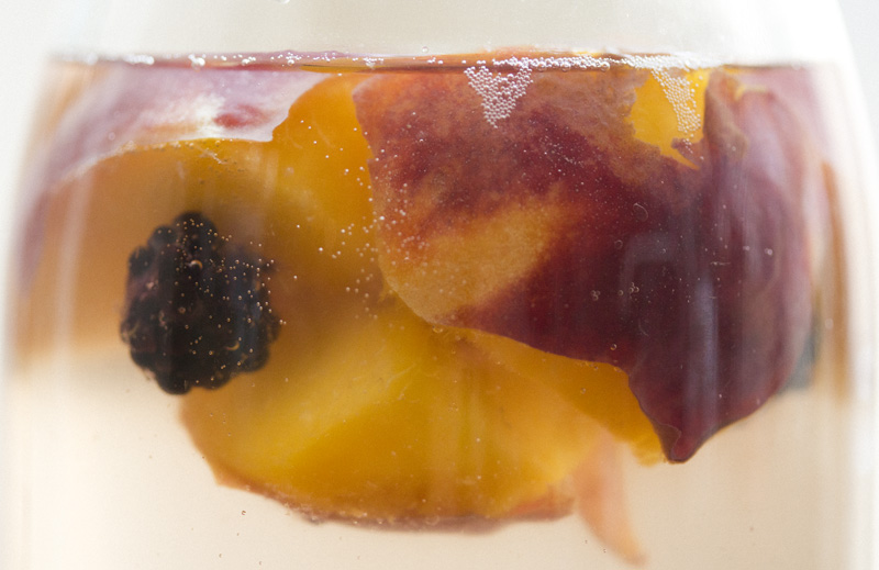 1/4 of a large glass jar of mixed organic ripe fruit (we used fresh peaches and blackberries)