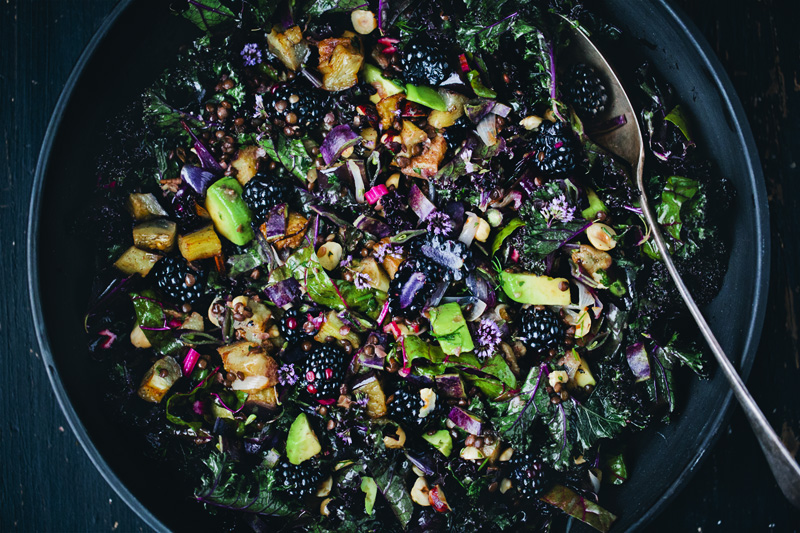 Purple Kale & Blackberry Salad with Roasted Honey Feta