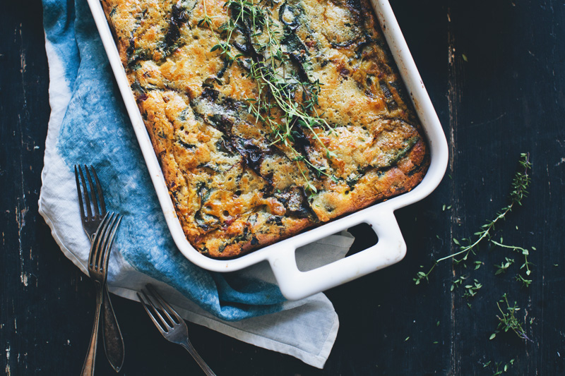 They call it pancake in Sweden, but it is perhaps better described like a combination of a frittata and a soufflé. It’s quite light and airy, especially straight from the oven. As it cools down, it becomes more set and if you let it cool completely and leave it for a few hours, you can slice it up in 1/2 inch/1,5 cm pieces and wrap for a picnic. For that purpose, you could also bake it in two small loaf pans. Elsa prefers them like that, almost like a savory flapjack.